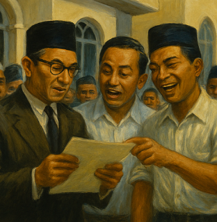 탄쿠 압둘 라흐만은 군중 앞에서 세 번 외쳤지.