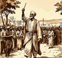 그를 따라 수천 명이 함께 걸었고,