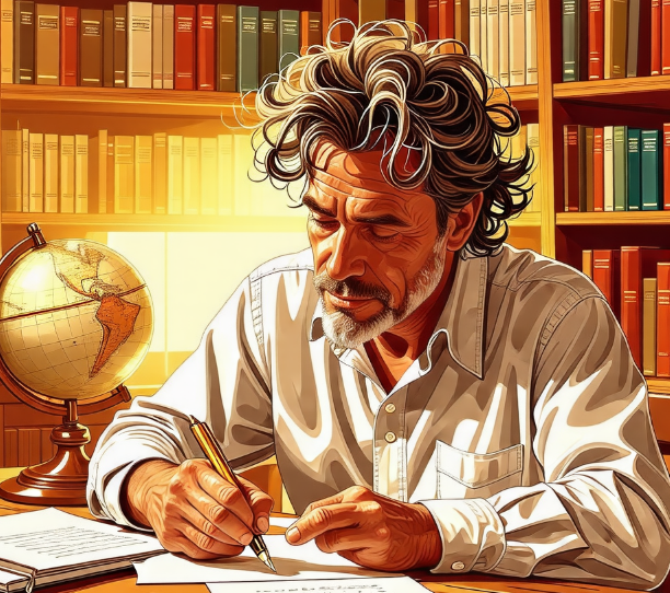그가 편지를 쓰면,