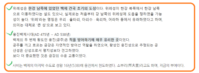 군사적 의미 외에도 공산성은 문화유산으로도 유명합니다. 그것은 산, 강, 그리고 무성한 녹색을 포함한 그림 같은 풍경으로 둘러싸여 있어 미적인 부분에 매력을 더합니다. 이 산성 단지는 백제의 왕실 생활과 관습에 대한 왕궁터와 무령왕릉과 같은 몇몇 역사적 유물들을 포함합니다.