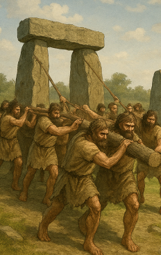 무거운 돌을 수십 킬로미터 떨어진 곳에서 가져와 세웠다는 사실이야.