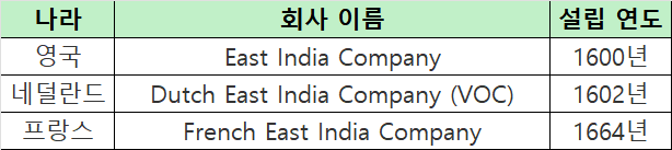 유럽 각국이 ‘동인도 회사’를 설립하기 시작해.