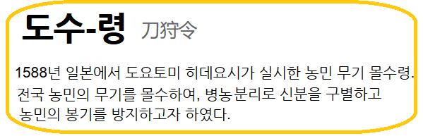 '도수령(刀狩令)'으로 농민들의 무장을 금지하고,