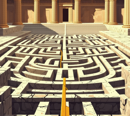 테세우스는 실을 풀며 미궁 안으로 들어가