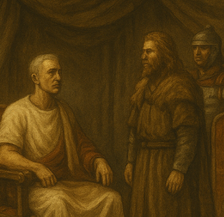 시저는 그를 로마로 끌고 가서